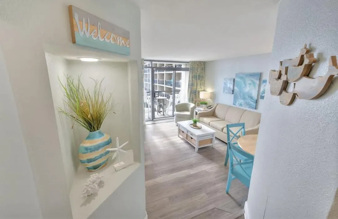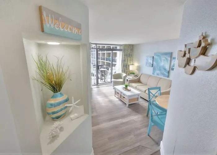This beachfront apartment lies 2.2 km from Barefoot Landing|the Barefoot Landing. The Beachwood Golf Club is approximately 10 minutes by car from the apartment.